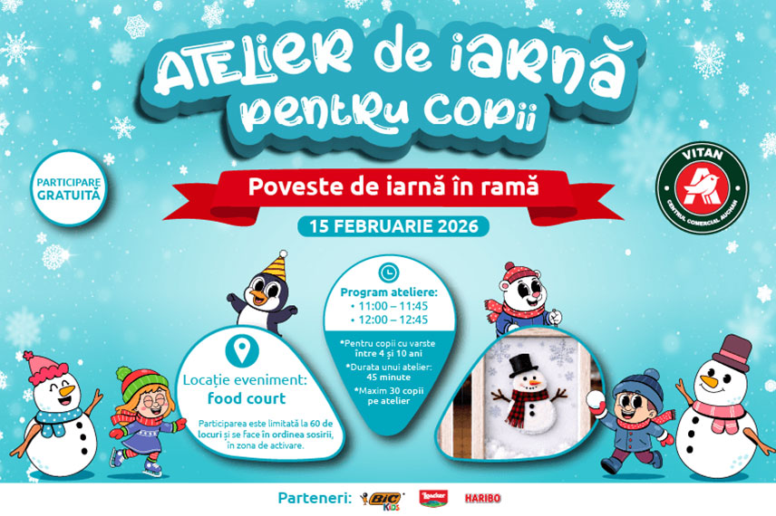 Iarna prinde viață prin imaginația copiilor! Pe 15 februarie, vă invităm la un eveniment special dedicat celor mici – un atelier creativ în care poveștile de iarnă se transformă în adevărate opere de artă realizate chiar de ei.