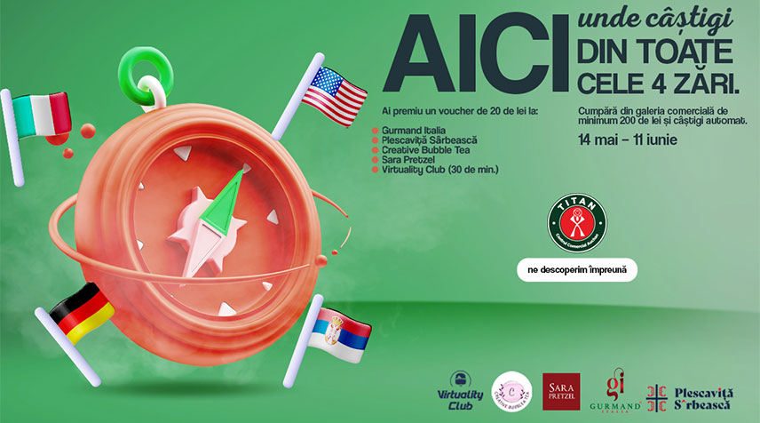 Ți-am răsplătit cumpărăturile de minimum 200 de lei făcute în centrul nostru comercial, oferindu-ți automat vouchere pentru bunătăți sau distracție la comercianții noștri precum Virtuality Club, Sara Pretzel, Gurmand, Plescaviță Sârbească și Creative Bubble Tea.