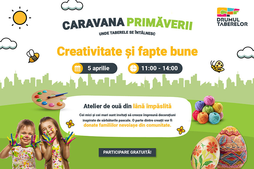 Primăvara aduce cu ea energie, culoare și dorința de a petrece timp de calitate împreună. În acest spirit, Caravana Primăverii – unde taberele se întâlnesc poposește la Drumul Taberelor cu un eveniment dedicat familiilor, copiilor și tuturor celor care iubesc activitățile creative cu sens.