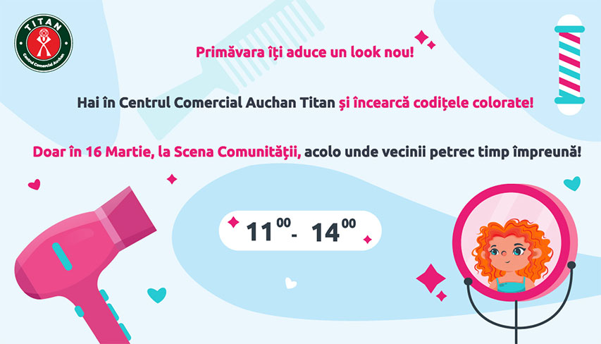 Pentru că orice aniversare de 18 ani are nevoie și de o schimbare de look, ne-am organizat în luna martie cu un eveniment pentru copii. Salonul de Styling a adus multă culoare în Centrul Comercial Auchan Titan!