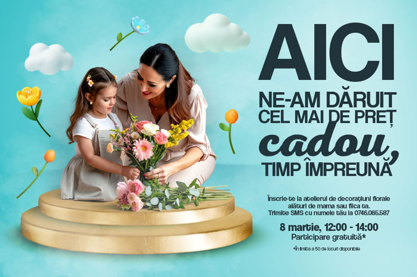 Pe 8 martie, la Etajul 1 al centrului comercial, organizăm un atelier special de decorațiuni florale, gândit ca o experiență caldă și creativă pentru mame și fiice.