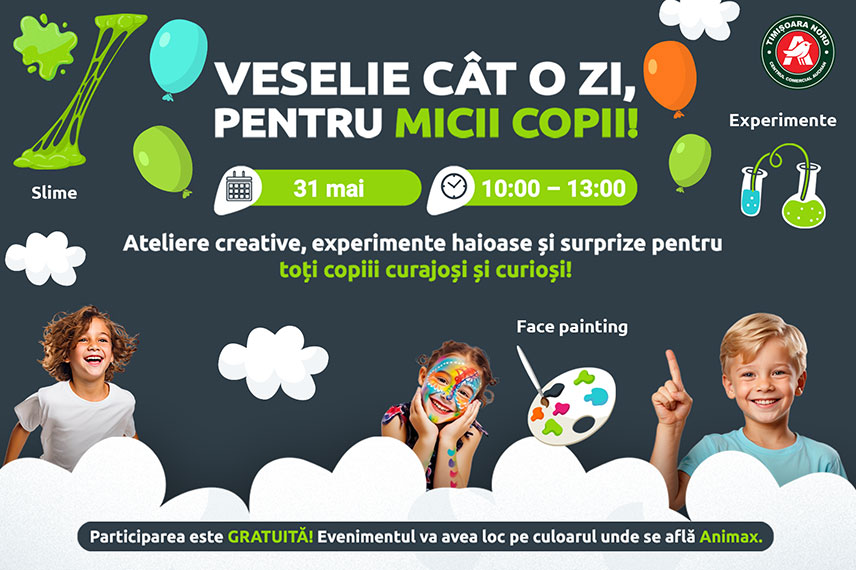 Pe 31 mai, între orele 10:00 – 13:00, ne întâlnim la Centrul Comercial Auchan Timișoara Nord pentru o zi plină de bucurie, culoare și surprize!
