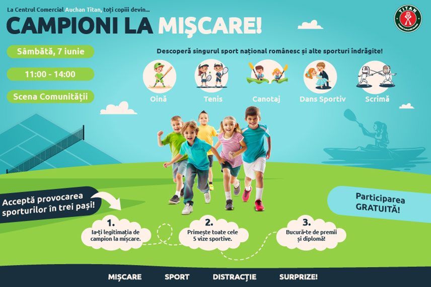 Pe 7 iunie 2025, începând cu ora 11:00, Centrul Comercial Auchan Titan devine locul în care energia, joaca și pasiunea pentru mișcare se întâlnesc într-un eveniment special: „Campion la Mișcare”.