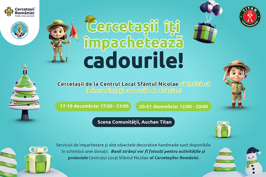 La Centrul Comercial Auchan Titan, cercetașii îți împachetează cadourile!