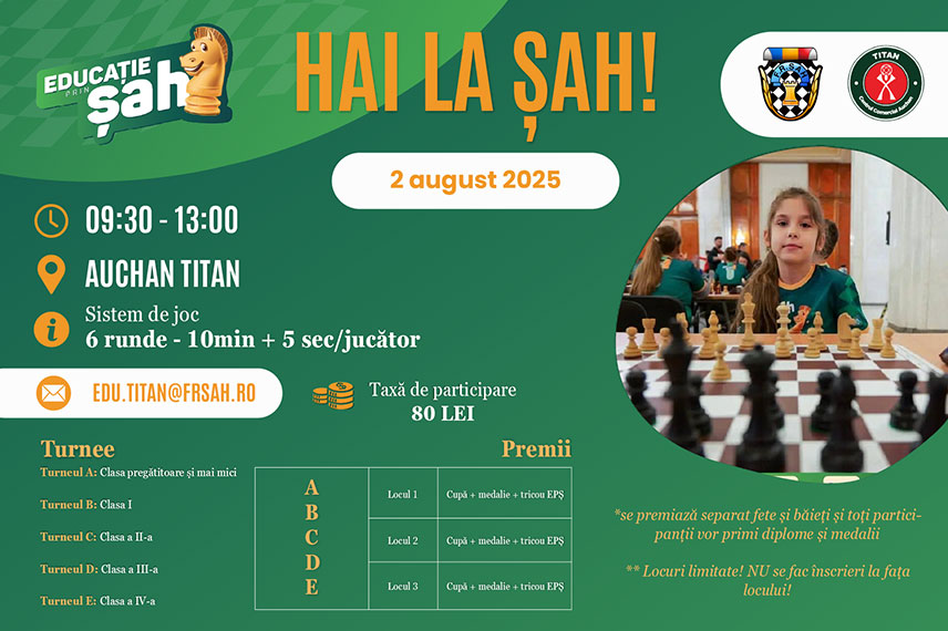 Eveniment organizat de „Educație prin Șah”, o inițiativă care promovează incluziunea educațională și dezvoltarea holistică a copiilor. Mai multe informații: Click aici