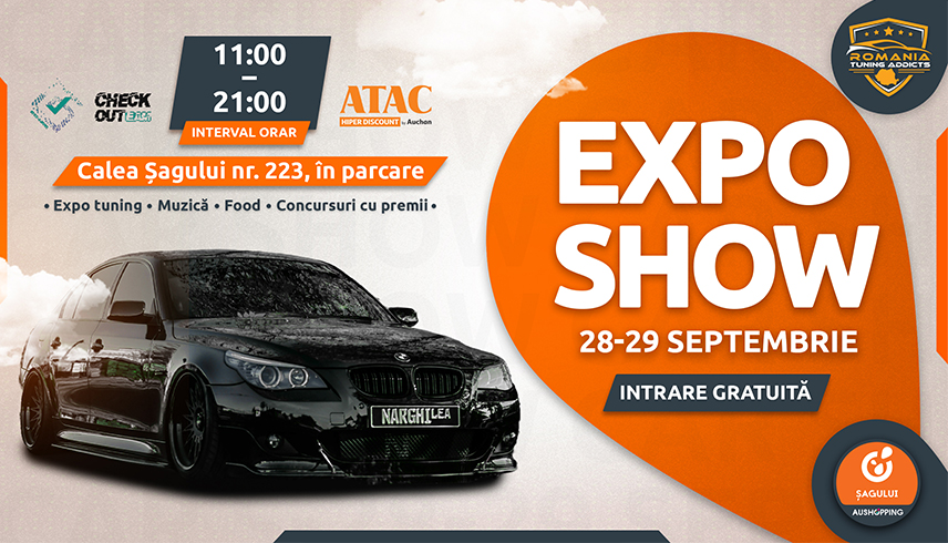 Pasionați de mașini și adrenalină, vă așteptăm la Car Expo Show pe 28 și 29 septembrie la Centrul Comercial Aushopping Șagului!