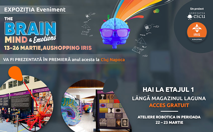 Dacă ești curios să afli mai multe despre acest organ extraordinar și despre felul în care ne influențează gândirea, emoțiile și deciziile, te invităm la expoziția interactivă „The Brain: Mind & Emotions”, găzduită de Aushopping Iris, la etaj 1, lângă magazinul Laguna, în perioada 13 – 26 martie.