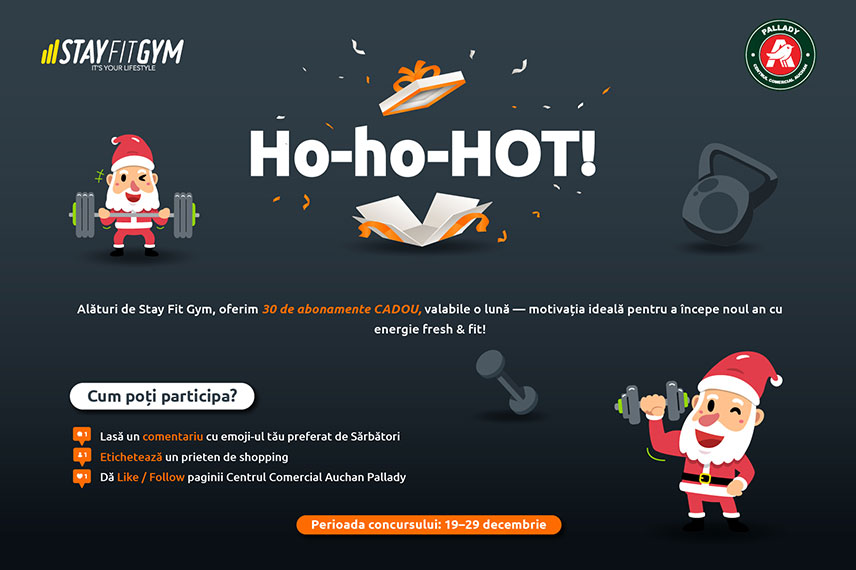 Alături de Stay Fit Gym, lansăm concursul „Ho-ho-HOT!”, prin care oferim 30 de abonamente gratuite, valabile timp de o lună. Este un impuls ideal pentru a reveni la un stil de viață activ după perioada sărbătorilor.