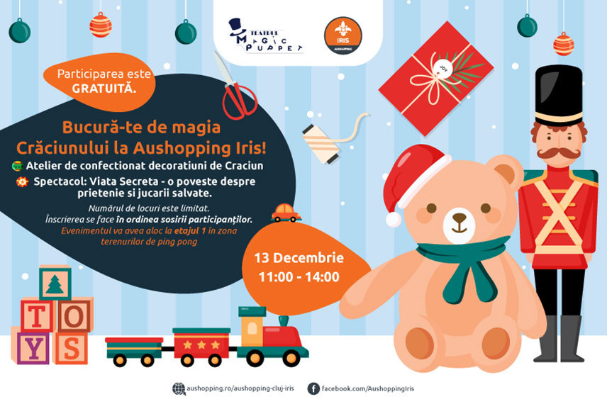 🎁 Vă așteptăm cu drag la AuShopping Iris pentru a sărbători împreună magia Crăciunului prin joacă, artă și povești minunate!