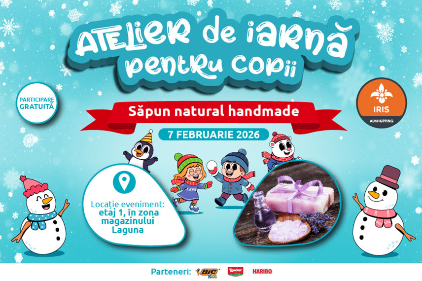 Iarna aceasta aduce creativitate, culoare și distracție la Aushopping IRIS Cluj! Pe 7 februarie, îi invităm pe cei mici la un atelier special unde vor descoperi cum se realizează un săpun natural handmade, chiar prin propriile mâini.