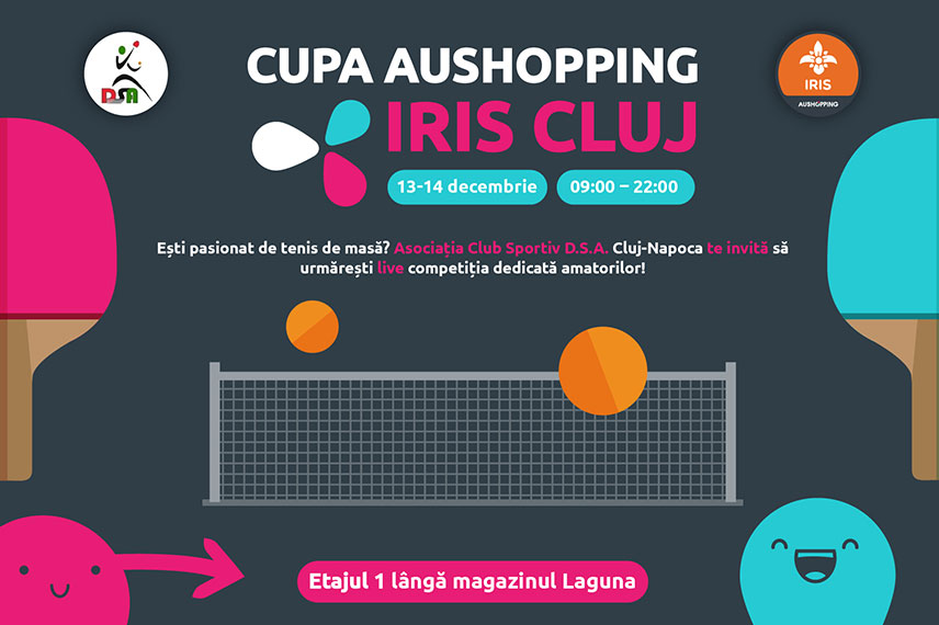 În perioada 13–14 decembrie, pasionații de tenis de masă sunt așteptați la Cupa Aushopping Iris Cluj , un eveniment sportiv dedicat amatorilor și persoanelor cu dizabilități care iubesc mișcarea și competiția.